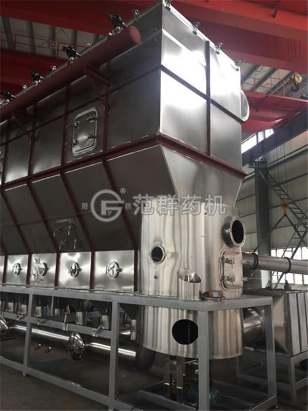 潔凈的熱風(fēng)經(jīng)閥板分配進(jìn)入床體內,從加料器進(jìn)入的濕物料被熱風(fēng)形成流化狀態(tài),如煮沸的開(kāi)水在床體內跳躍,故稱(chēng)為沸騰干燥器(沸騰干燥機),由于熱風(fēng)與物料廣泛接觸,因此在較短的時(shí)間內就可以干燥。從床體的一頭進(jìn)入,經(jīng)幾分鐘至幾十分鐘時(shí)間的“沸騰”,從床體的另一頭自動(dòng)流出。