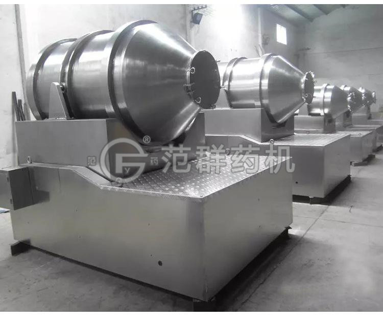 EYH二維混料機的轉筒可同時(shí)進(jìn)行二個(gè)運動(dòng),一個(gè)為轉筒的自轉,另一個(gè)為轉筒隨擺動(dòng)架的擺動(dòng)。被混和物料在轉筒內隨轉筒轉動(dòng)、翻轉、混和的同時(shí),又隨轉筒的擺動(dòng)而發(fā)生左右來(lái)回的摻混運動(dòng),在這兩個(gè)運動(dòng)的共同作用下,物料在短時(shí)間內得到充分的混和。 EYH二維混料機適合所有粉、粒狀物料的混合。