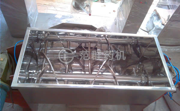 該機型由容器、螺旋攪拌葉片和傳動(dòng)部件組成;螺旋葉片一般做成雙成或三層,外層螺旋將物料從兩側向中央匯集,內層螺旋將物料從中央向兩側輸送,形成對流混合。
