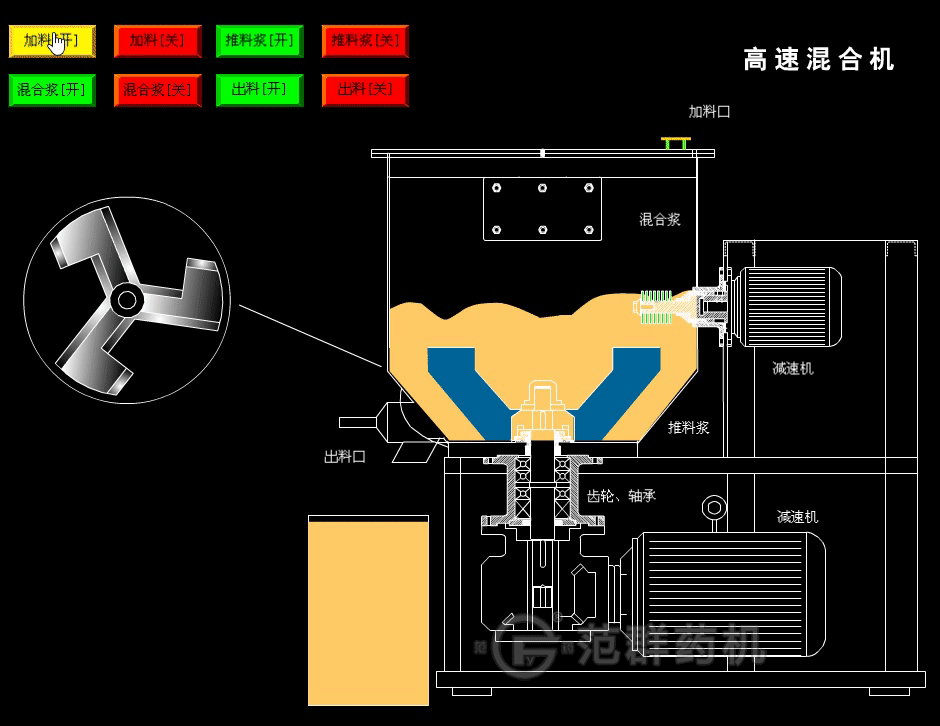 5、該機物料接觸處均用不繡鋼制作,在混合過(guò)程中不會(huì )產(chǎn)生物料揮發(fā)、變質(zhì)和流失